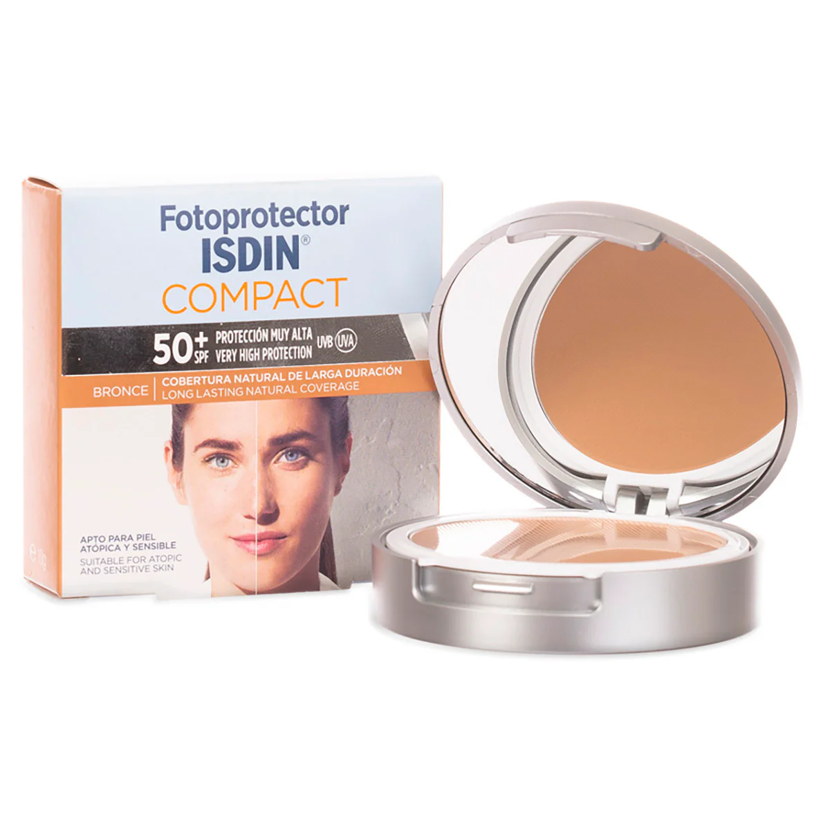 Fotoprotector compacto con color tono bronce FPS 50+ que combina muy alta protección solar con cobertura uniforme tipo maquillaje. Ayuda a disimular imperfecciones, unifica el tono de la piel y deja un acabado natural. Textura cremosa de fácil aplicación, ideal para retoques durante el día. Recomendado para todo tipo de piel, incluyendo piel sensible.
